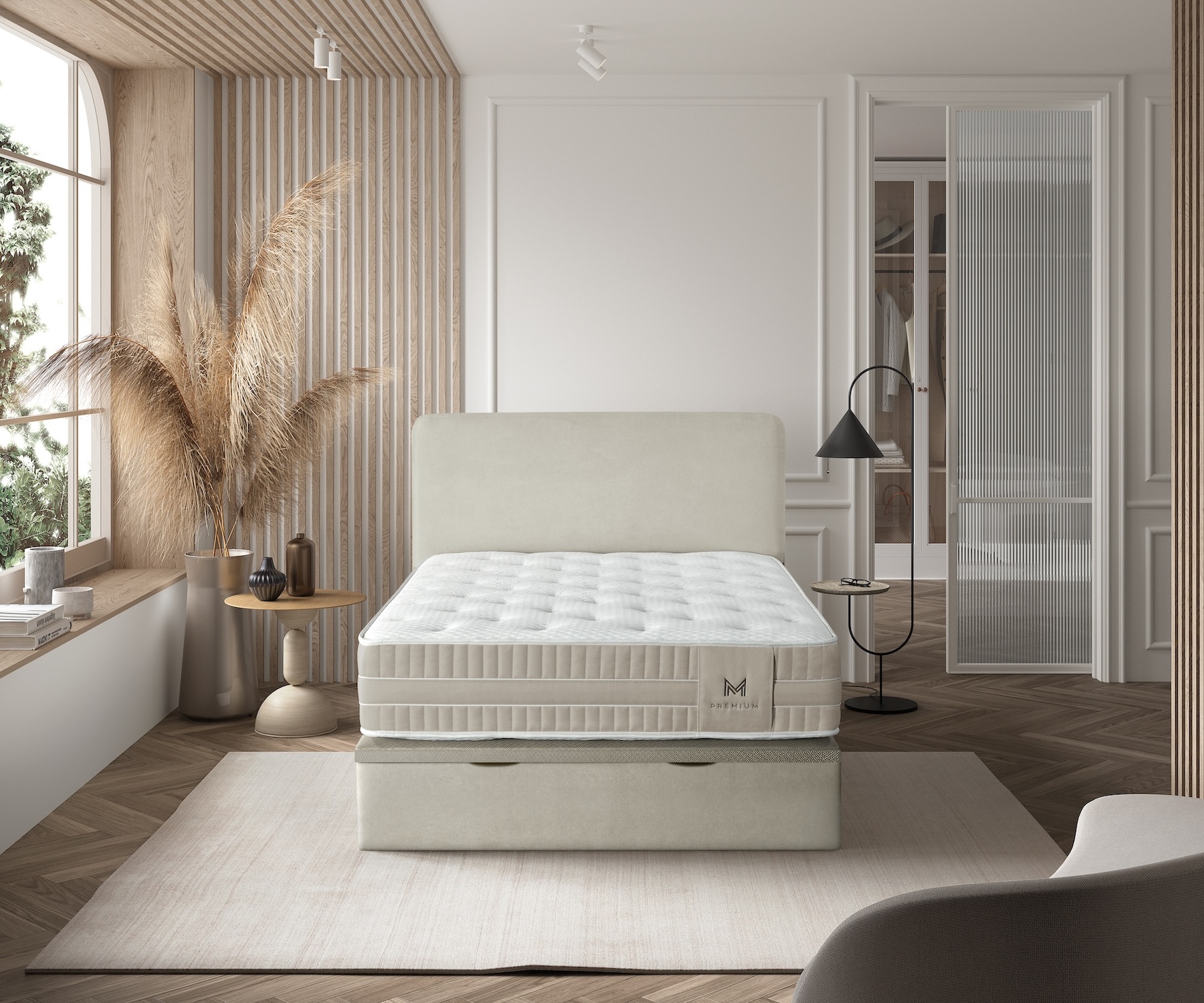 Hace juego con la base tapizada Tapislat y el canapé Elite, formando un conjunto armónico y visualmente atractivo para cualquier dormitorio.