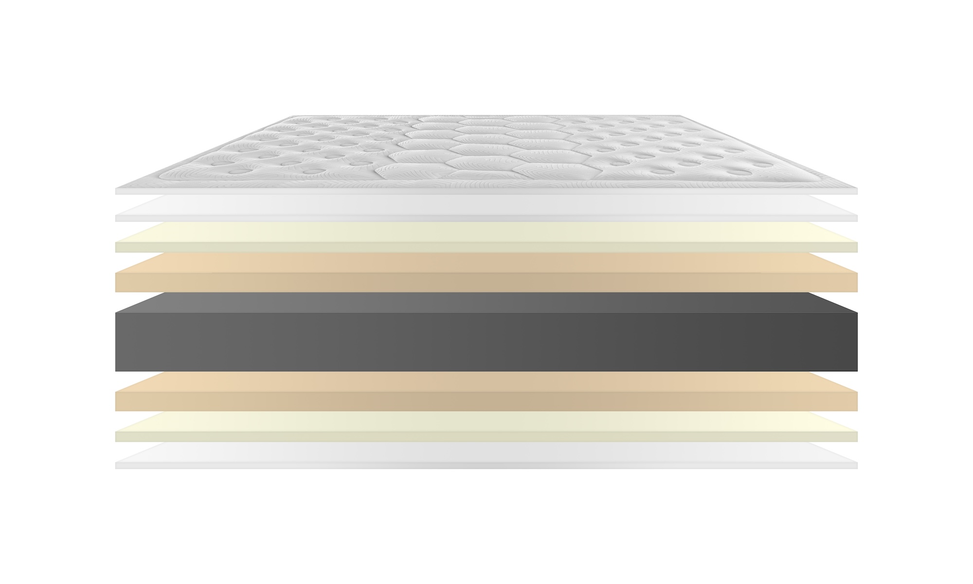 Cuenta con doble cara de uso, ambas compuestas por capas simétricas de 2 cm de viscoelástica, 3 cm de Firm Foam y fibra antialérgica. Esta composición mejora la adaptabilidad, reduce los puntos de presión y prolonga la vida útil del colchón al permitir voltearlo periódicamente.