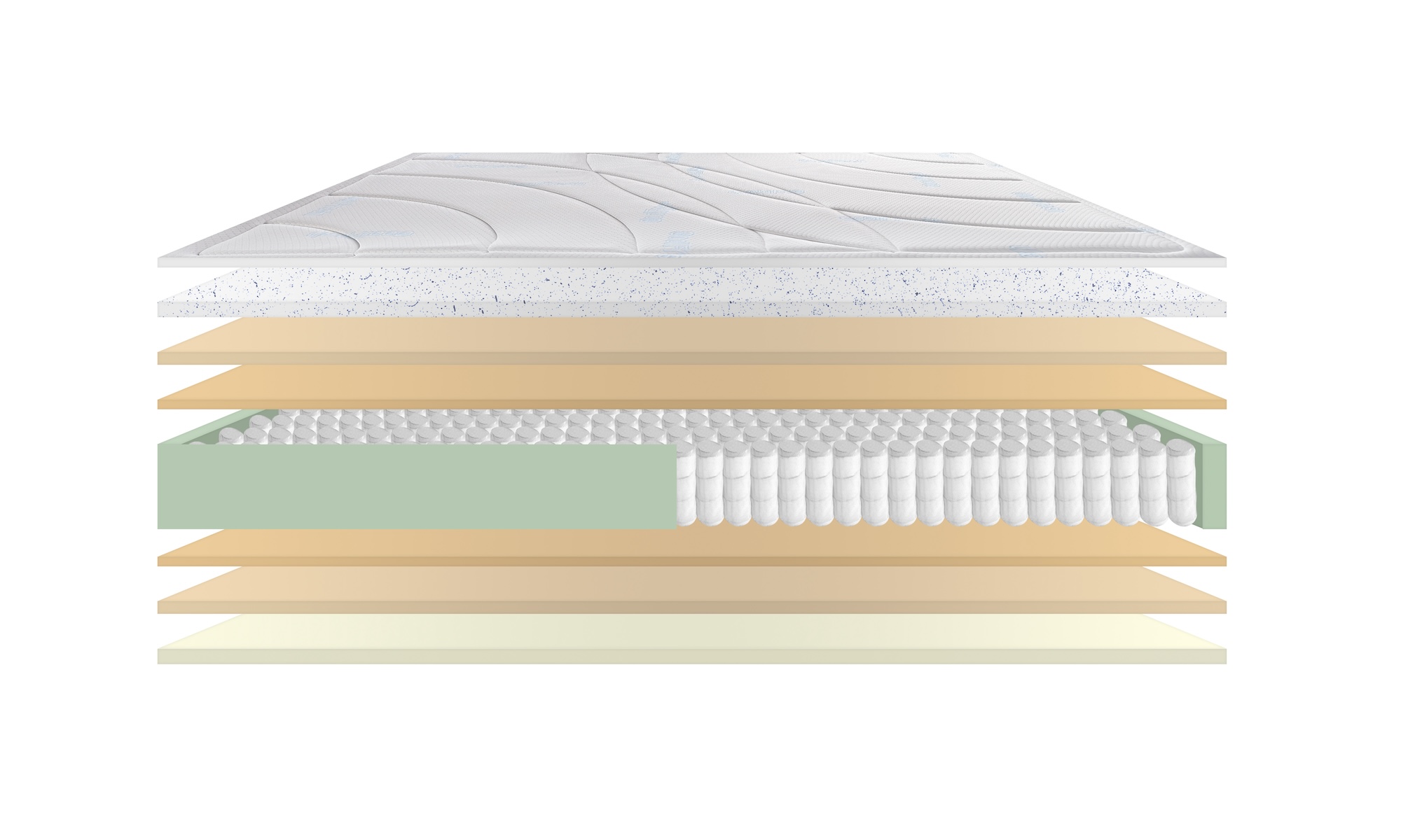 El colchón Extraconfort mod. Room 22 ( Viscoluxe ) está diseñado para quienes buscan un descanso firme, fresco y equilibrado durante todo el año. Su estructura de muelles ensacados proporciona independencia de lechos y una excelente ventilación, favoreciendo un descanso sin interrupciones.